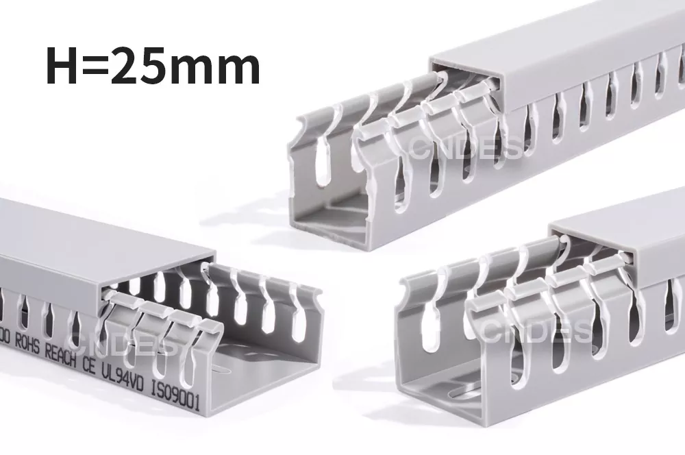 Този продукт е PVC кабелен канал с прорези с ниска височина, проектиран да организира, защитава и насочва електрическите кабели вътре в контролните панели. Височината от 25 мм позволява да се монтира: