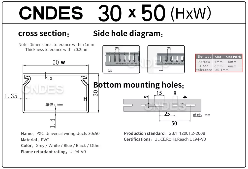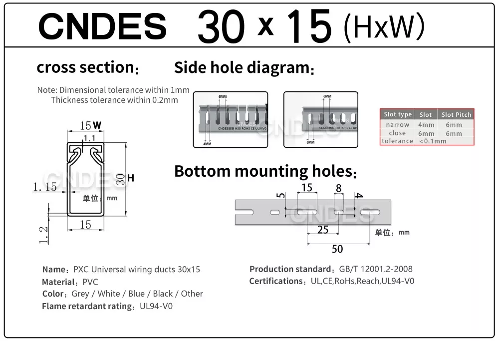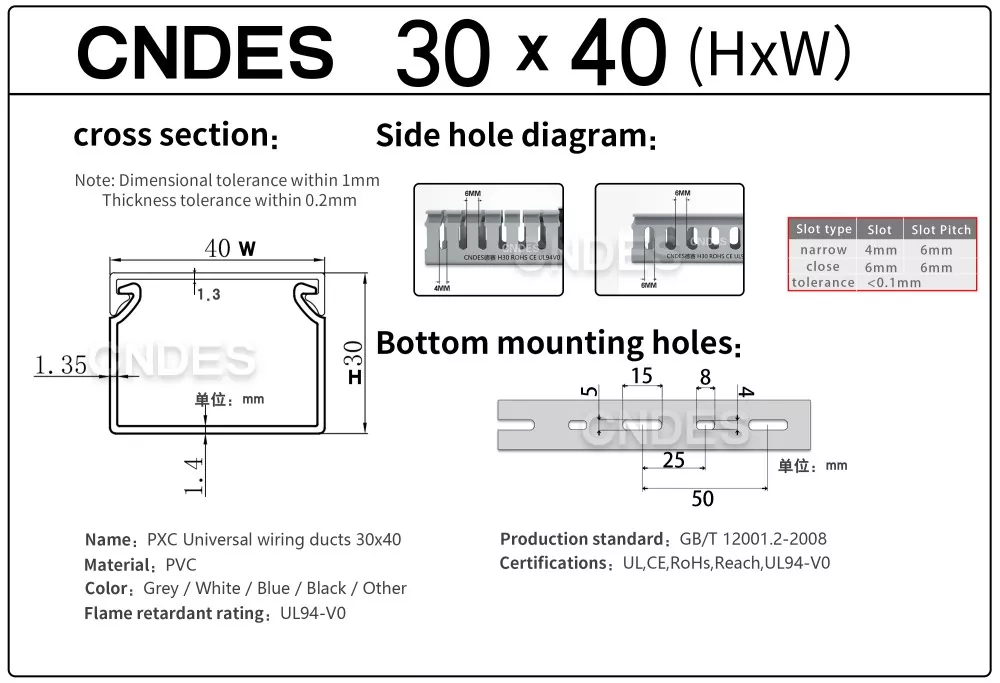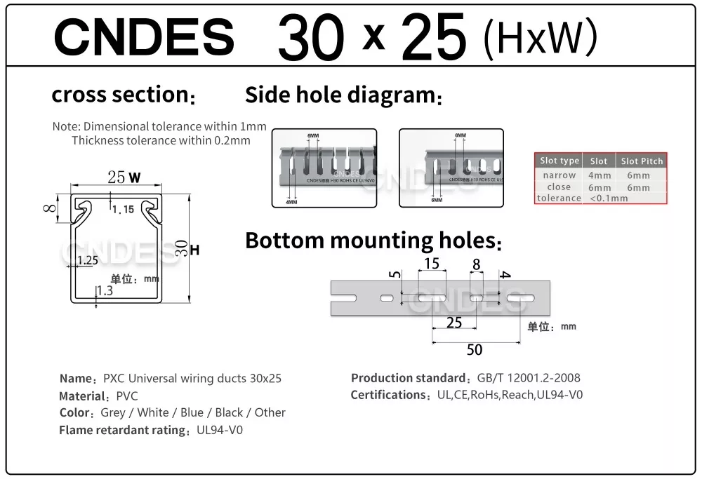 Нашият кабелен канал е преминал авторитетна сертификация: UL, CE, RoHS, REACH,UL94V0