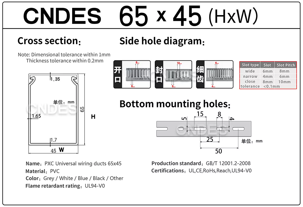 Ако набавяте персонализирани 65×45 сиви прорезни PVC канали за окабеляване от надежден производител и доставчик в Китай, CNDES предлага постоянно качество, гъвкаво персонализиране и професионално обслужване.