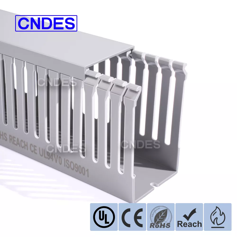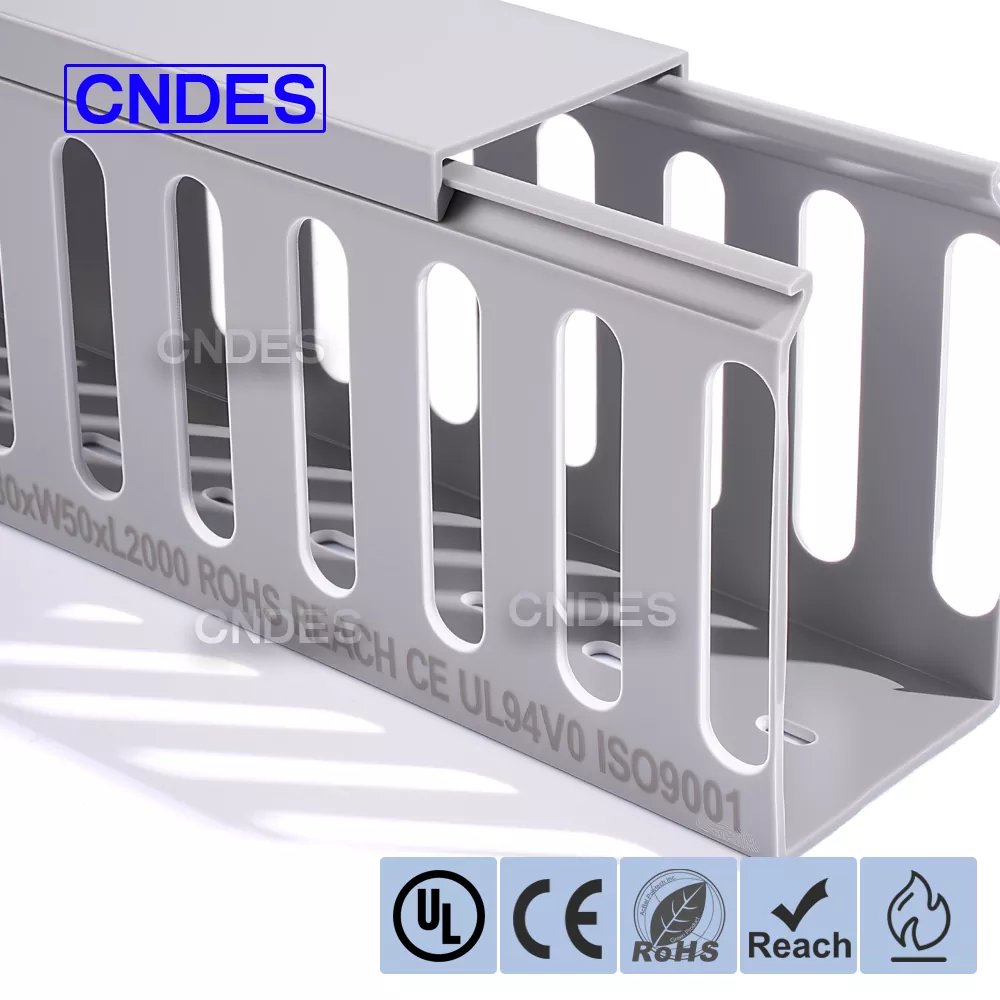 CNDES е професионален производител на кабелни скари с PVC прорези, разположен в Китай. Тук ще ви представим нашия кабелен органайзер за PVC панели с прорези 80×50, където 80*50 mm представлява кабелна скарата с височина 80 mm и ширина 50 mm.