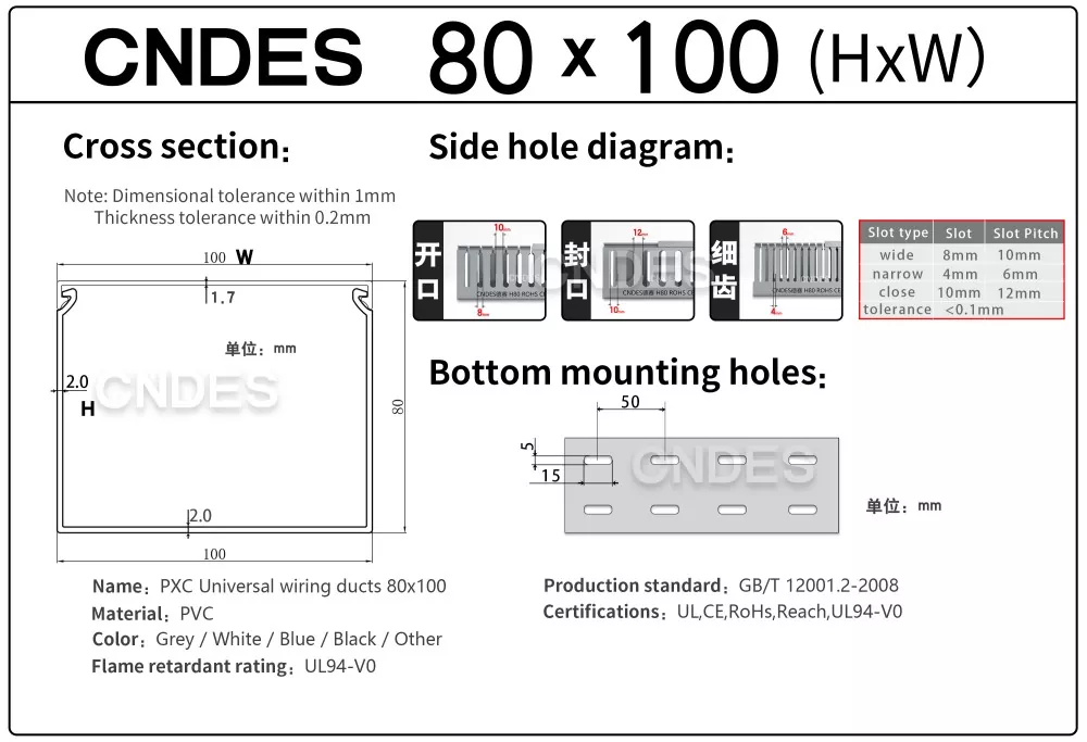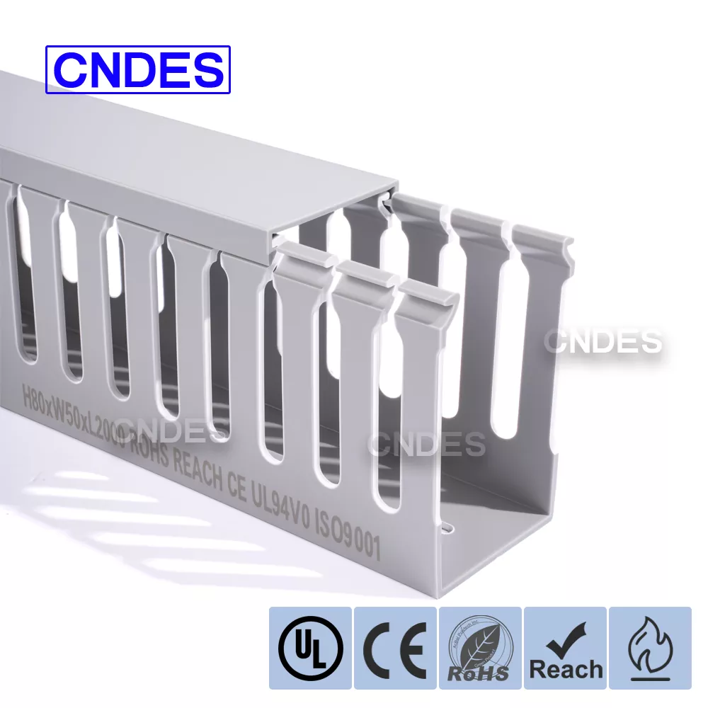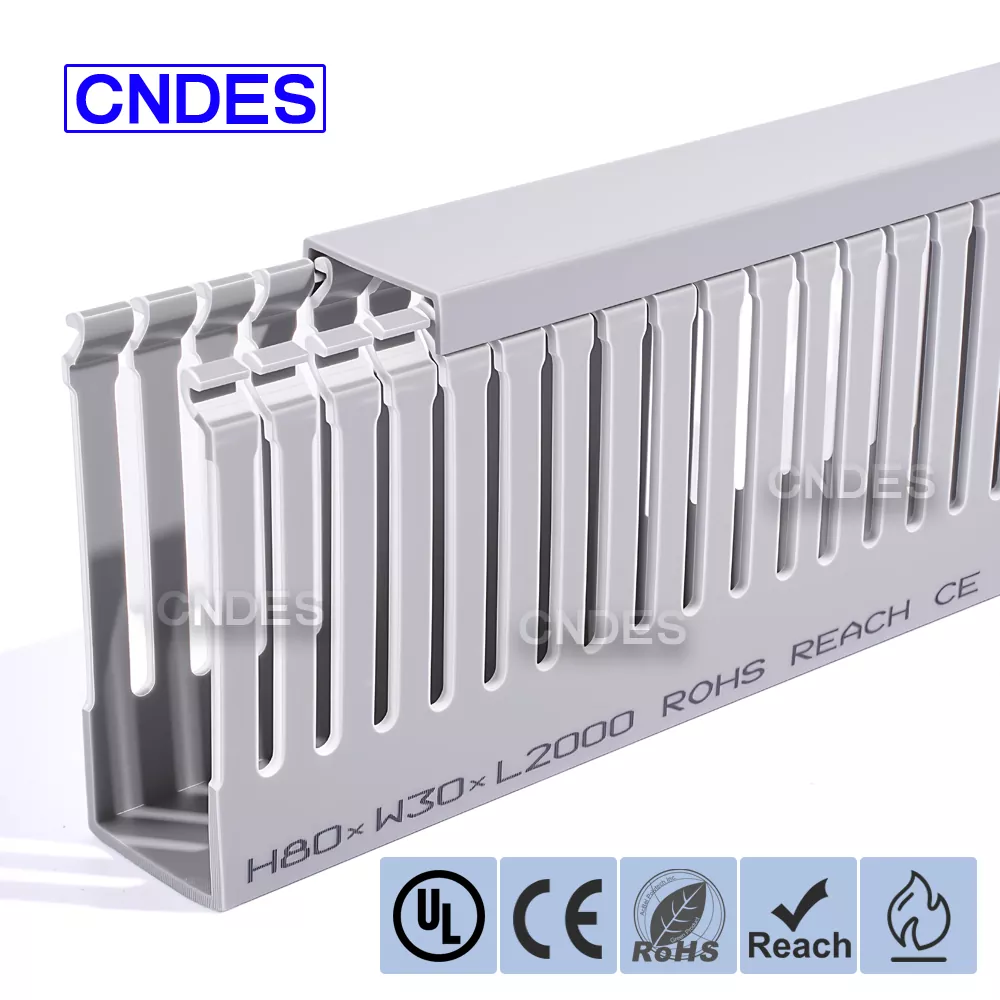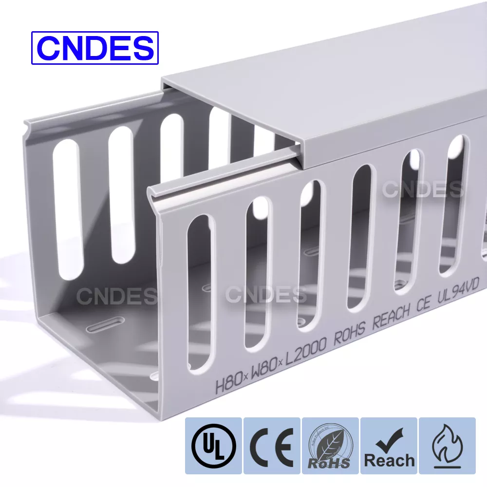 Персонализираният 80-висок прорезен PVC кабелен канал за автоматизация от CNDES е проектиран за ефективно управление на кабели в индустриални системи за автоматизация. Със своите 80 mm височина и дизайн с прорези, този канал осигурява достатъчно пространство за окабеляване с висока плътност, като същевременно поддържа кабелите организирани и защитени в сложни системи за управление, PLC и приложения за машинно окабеляване.