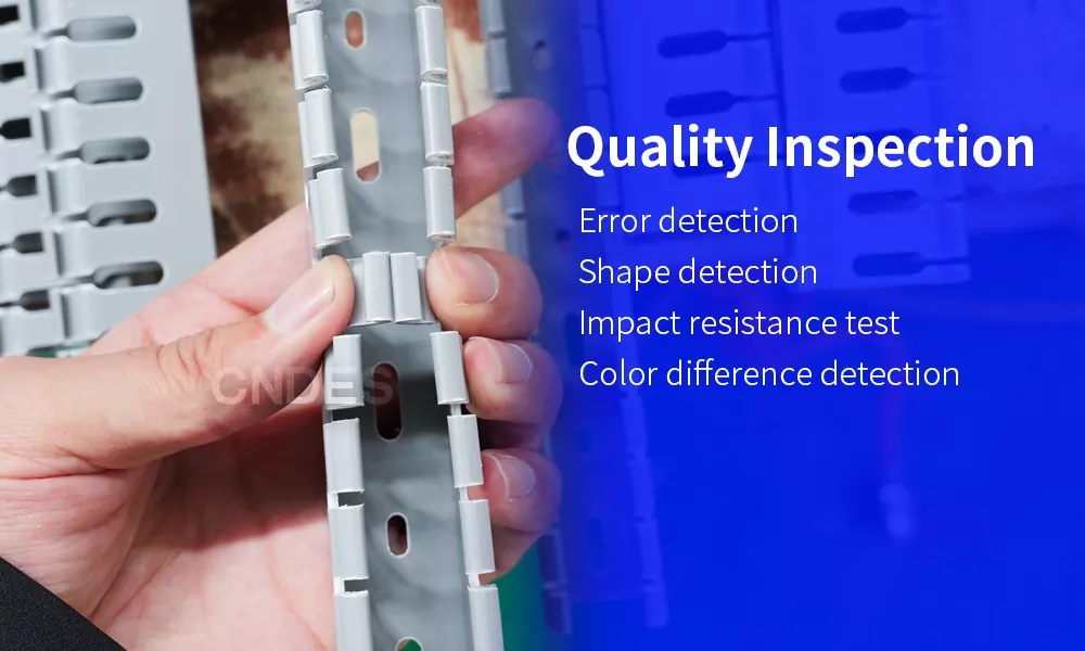 Проверката на качеството с висок стандарт е от съществено значение за осигуряването на добри продукти. В CNDES нашият стремеж към качество е безкраен. Ние не пестим усилия, за да предоставим на нашите клиенти надеждни продукти. Имаме четирима инспектори по качеството, които работят на смени, за да извършват онлайн инспекции на нашите продукти. Това гарантира, че нашите Качествени 80 Височинни PVC кабелни канали за автоматизация са с квадратна форма, имат гладки повърхности, отговарят на приемливи стандарти за якост,