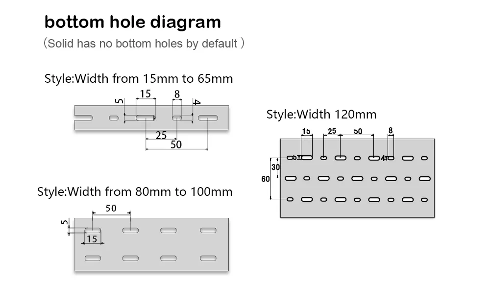 Спецификациите на кабелната скарата са изразени като височина * ширина, като единицата е mm. Първо определете необходимия размер на кабелната скарата, като например 80 mm височина и 40 mm ширина. След това изберете ширината на изходния отвор въз основа на дебелината на окабеляването, или широки зъби (8 мм), или фини зъби (4 мм). Препоръчва се действителният кабел да заема не повече от 70% от пространството на тавата.